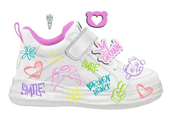 Главная•Indigo kids•47-051A Белый / мультиколор 30-2,31-2,32-2,33-2,34-2,35-2 Indigo kids Ботинки Актив.отдых Кроссовки Иск.мат, Текстиль, ЭВА В/О жен