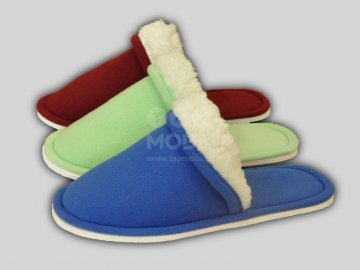 Тапочки женские с закрытым носком. Ткань верха - флис(100%п/э). Подклад-облегченный мех Sherpa (100% п/э). Межподкладка-поролон толщина 5мм. Окантовка-флис. Подошва-эвапласт толщина 5мм цвет белый.