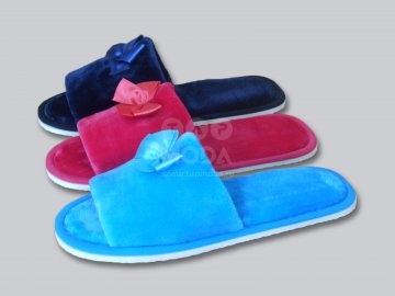 Тапочки женские с открытым носком. Ткань верха велсофт(100%п/э). Подклад - велсофт (100%хлопок). Межподкладка-поролон толщина 5мм. Окантовка-тесьма. Подошва - эвапласт толщина 5 мм цвет белый.