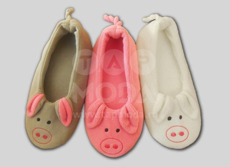 Тапочки женские модель "Балетки - Хрюшки". Ткань верха флис (100%п/э). Подклад-флис (100%п/э). Межподкладка-поролон толщина 5мм. Подошва-2см поролон,обшитый снизу м-лом прерывистым на основе ПВХ.