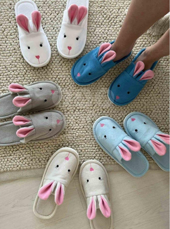 Тапочки женские с закрытым носком "Зайки". Ткань верха - флис (100% п/э). Подклад - флис (100%п\э). Межподкладка - поролон толщина 5мм. Окантовка-флис. Подошва - эвапласт толщина 5мм цвет белый.Цвет: светло-серый, темно-серый, белый, бежевый, небесный, голубой.