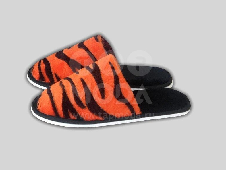 Тапочки детские с закрытым носком "Тигровый принт". Ткань верха - велюрсофт. Подклад - бязь(100%хлопок). Межподкладка - поролон толщина 5мм. Окантовка-тесьма. Подошва - эвапласт толщина 5 мм цвет белый. Цвет:оранжевый.