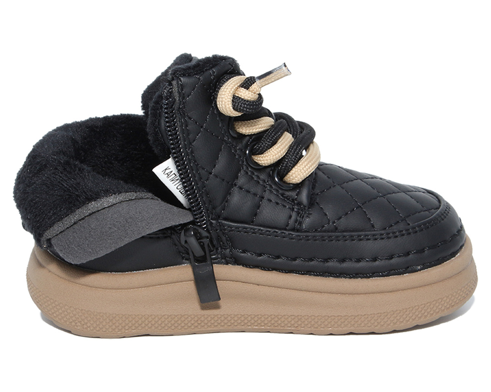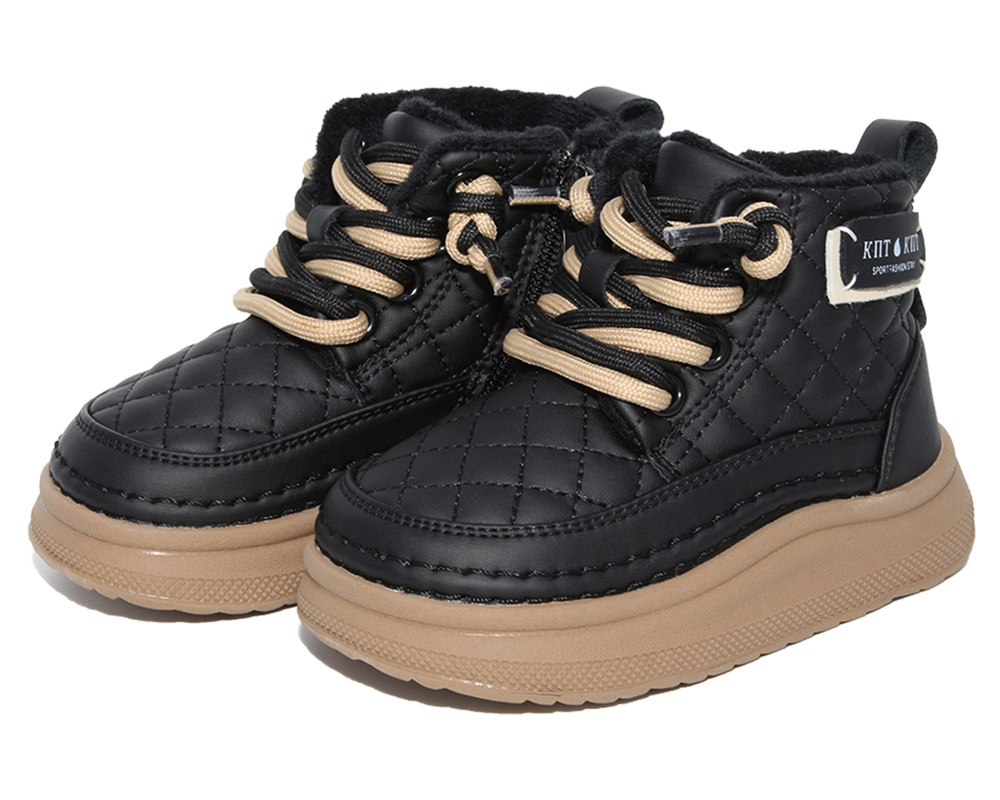 F22081 Чёр 17-2,18-2,19-2,20-2 Капитошка Ботинки Повсед Дерби Иск.мат, Байка/Флис, Резина В/О жен