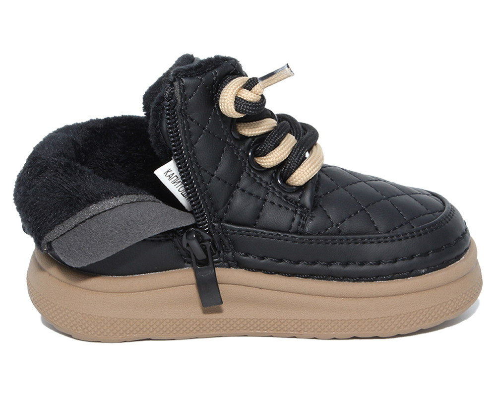 F22165 Чёр 22-2,23-2,24-2,25-2 Капитошка Ботинки Повсед Дерби Иск.мат, Нат.шерсть, Резина Зима жен