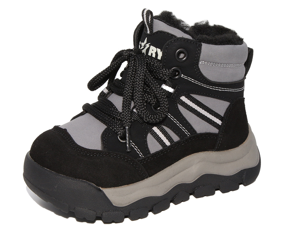 G22569 Чёр 26-1,27-1,28-1,29-1,30-1,31-1 Капитошка Ботинки Актив.отдых Оксфорд Иск.мат, Нат.шерсть, Резина Зима Муж