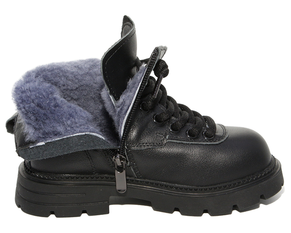 G22598 Чёр 27-1,28-1,29-1,30-1,31-1,32-1 Капитошка Ботинки Повсед Оксфорд Нат.кожа, Нат.мех, Резина Зима жен