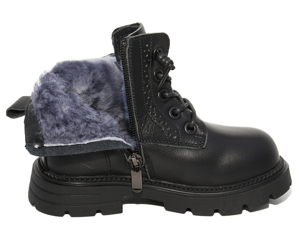 G22600 Чёр 27-1,28-1,29-1,30-1,31-1,32-1 Капитошка Ботинки Повсед Дерби Нат.кожа, Нат.мех, Резина Зима жен
