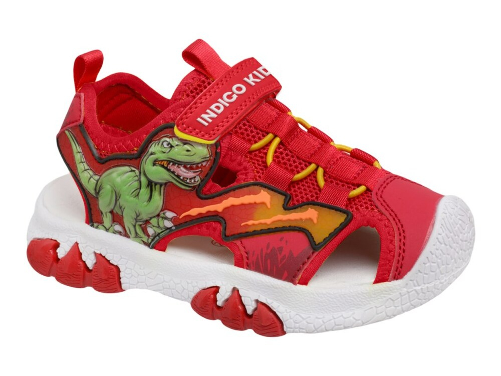 22-842C Сандалеты детские TM"INDIGO KIDS" Сандалии Сандалии для мальчиков INDIGO KIDS со светящимися LED глазами динозавра приведут вашего малыша в восторг! Босоножки выполнены из экокожи, современного высококачественного материала, приятного на ощупь и обладающего дышащим эффектом, с отделкой из текстиля. Легкая, износостойкая подошва ЭВА со вставками из прочного ТЭП не истирается и не скользит. Спортивные сандалии с закрытой носочной частью для дополнительной защиты во время активных игр. Благодаря стельке ЭВА сандалии подходят как обувь для пляжа или в бассейн. Липучки надежно фиксируют обувь на ноге. На боковой поверхности кроссовка от легкого движения мигают глаз динозавра. Правильно подобранная обувь - залог комфорта вашего ребенка. Длина стельки должна быть больше длины стопы в среднем на 0,6 - 0,8 см. Длина стельки: р. 25 - 153 мм, р. 26 - 159 мм, р. 27 - 165 мм, р. 28 - 172 мм, р. 29 - 178 мм, р. 30 - 184 мм!
